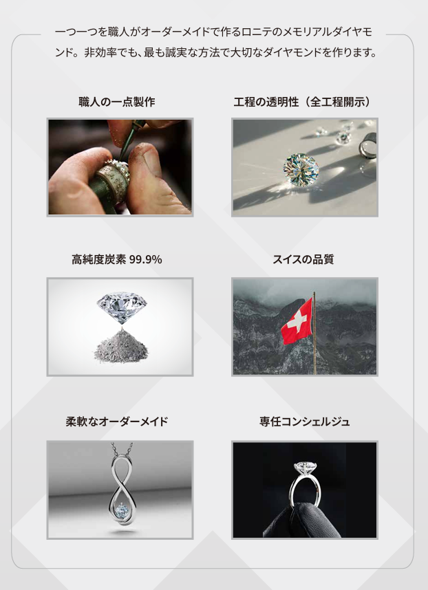 そのため。故人の個性を反映した非常に高品質のメモリアルダイヤモンドを提供させて頂きます